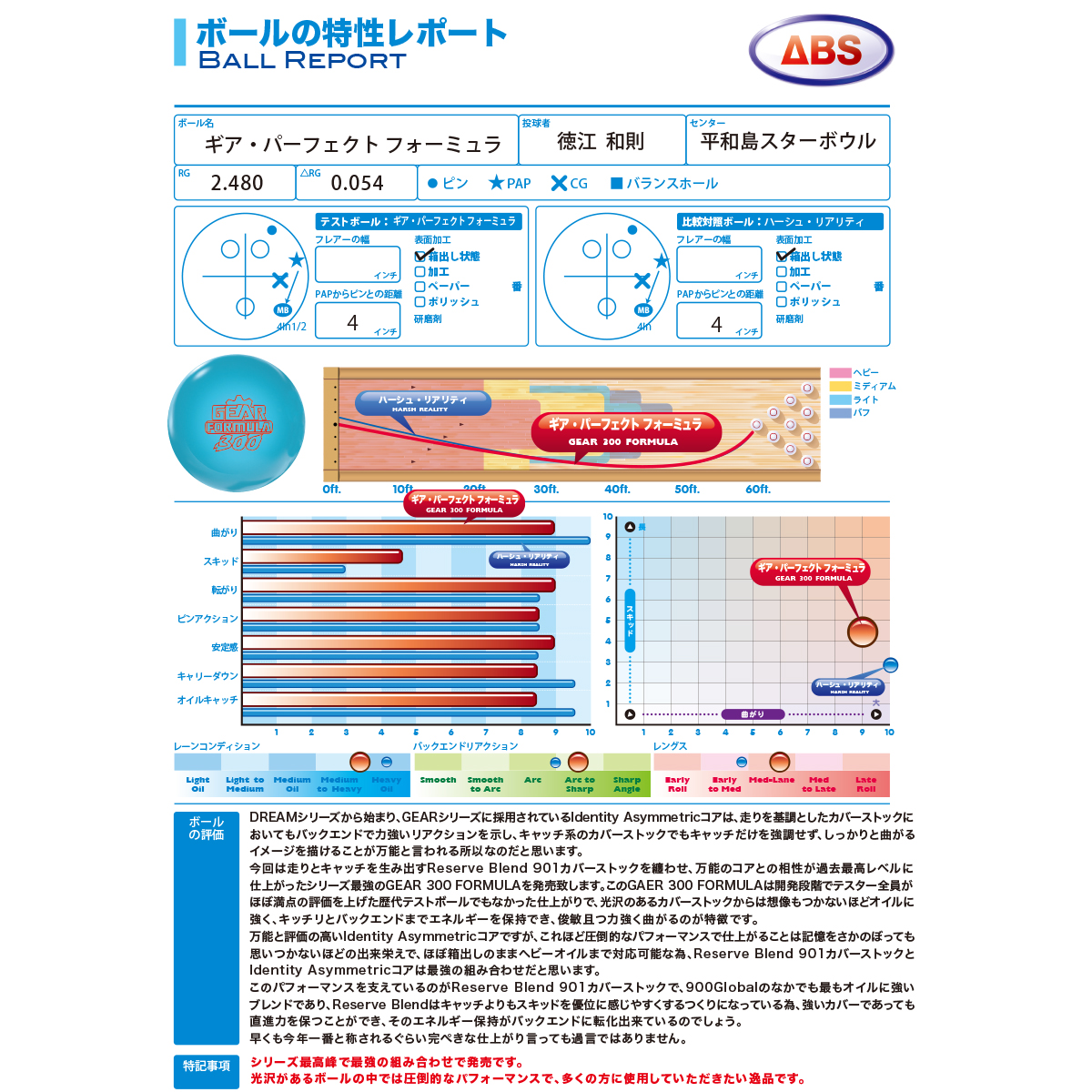 エタニティパイで採用したカバーストックをパール仕様で搭載し1500グリットポリッシュで仕上げることで、ミディアムオイルで完璧なスキッドを生み出します。リザーブブレンド901パールカバーは、S84カバーよりもクリーンでありながらオイルの中で十分なトラクションを発揮し、実績のあるコアとの組み合わせは今までにないバックエンドの動きを見せます。